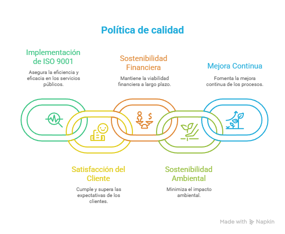 Esta política promueve la mejora continua, la innovación y el desarrollo sostenible, fundamentándose en el trabajo colaborativo de todo nuestro equipo humano y el respeto por el medio ambiente. A través de ella, reafirmamos nuestro propósito de ser una empresa responsable, transparente y enfocada en aportar al bienestar de la comunidad de Pamplona.
