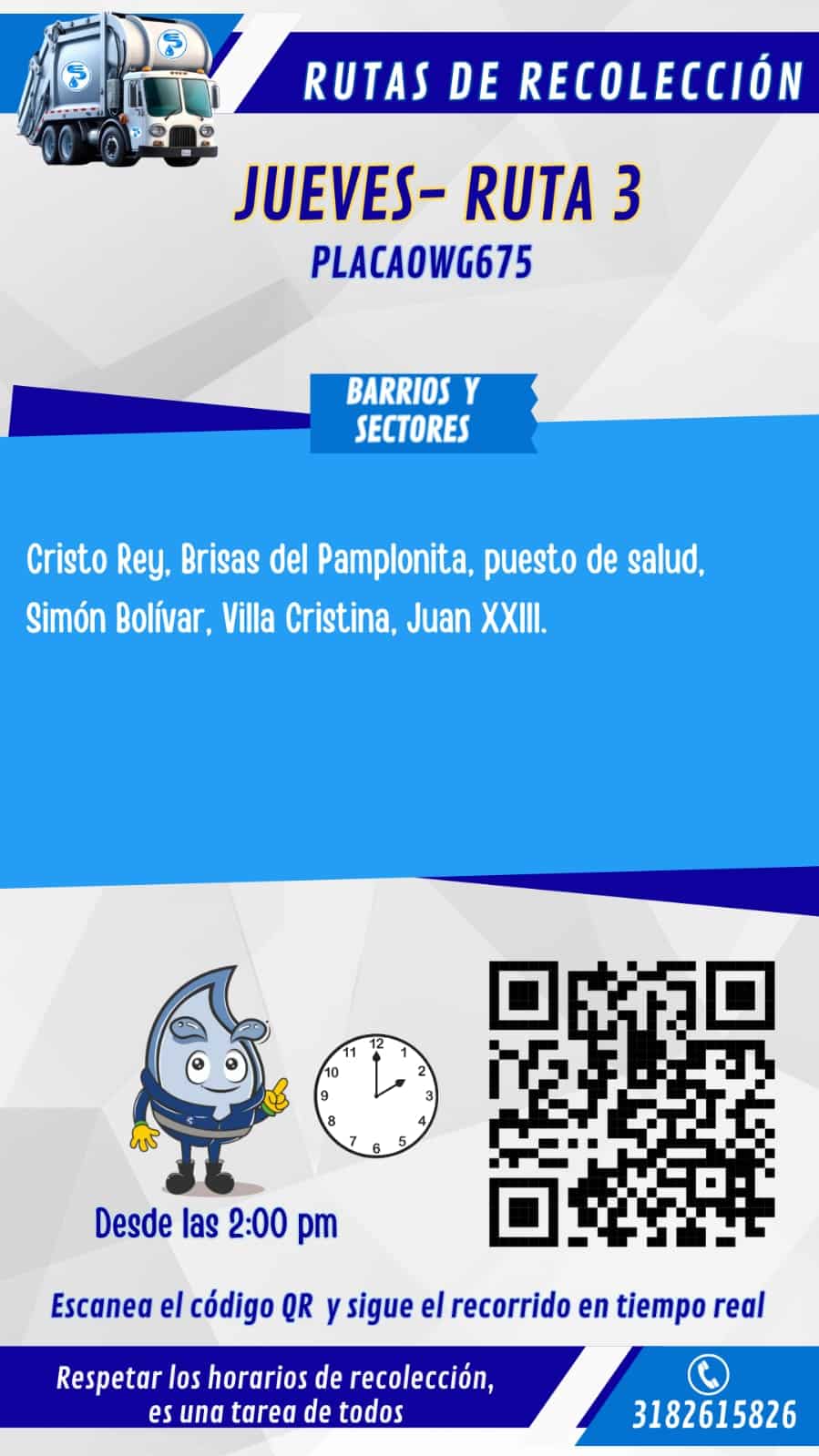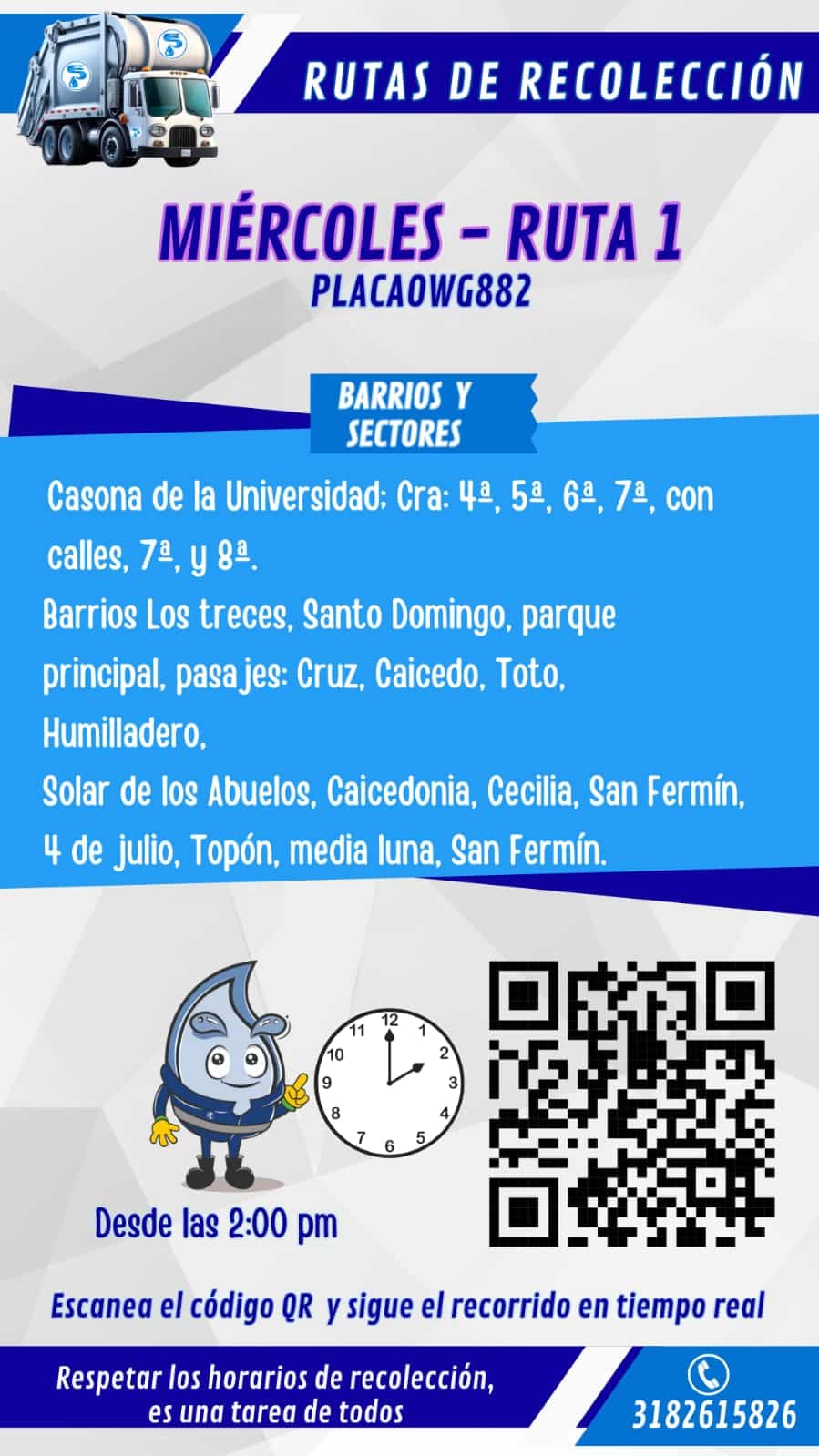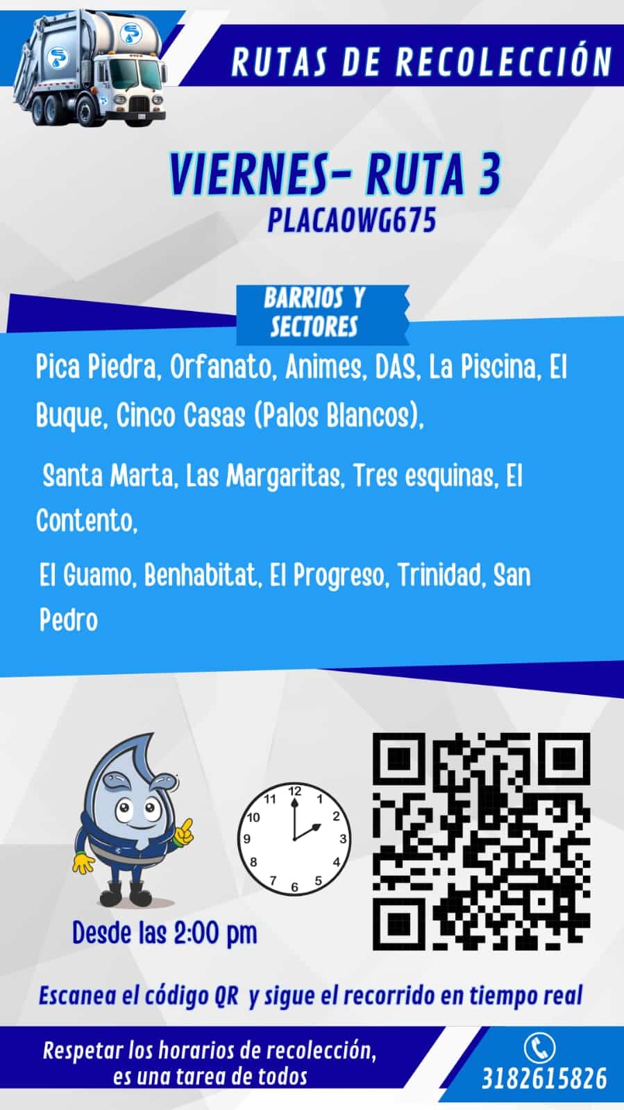 A continuación encontrará las rutas de recolección de residuos sólidos de nuestros vehículos compactadores en tiempo real cada día de la semana. Con esta información se quiere facilitar a nuestros usuarios del Servicio de Aseo la adecuada disposición de sus Residuos Sólidos, cumpliendo con las rutas y horarios establecidos por nuestra empresa.